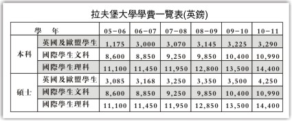 諾丁漢大學(xué)位于英國(guó)中部。由于近幾年與中國(guó)多所院校合作辦學(xué),中國(guó)留學(xué)生成批涌進(jìn)這所大學(xué);同時(shí)該校還在浙江寧波設(shè)立分校,有條件的大三學(xué)生會(huì)到英國(guó)讀書(shū)一年。記者聯(lián)系到該校的碩士研究生陳兵同學(xué),他詳細(xì)列出該校歷年來(lái)的收費(fèi)標(biāo)準(zhǔn)。今年的學(xué)費(fèi)比去年略有上漲,但增長(zhǎng)率與往年持平。他覺(jué)得這個(gè)上調(diào)的價(jià)格是合理的,中國(guó)來(lái)的同學(xué)都能接受。