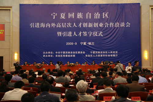 2009寧夏引進海內(nèi)外高層次人才創(chuàng)新創(chuàng)業(yè)合作洽談會9月7日下午在自治區(qū)首府銀川召開。此次洽談會聘27名院士、17名專家為“自治區(qū)特聘顧問”,宣布建立8家院士工作站和11家專家服務基地。自治區(qū)政府和一些單位與柔性和全職引進的專門人才簽署了相關框架協(xié)議、共建協(xié)議和聘用合同等。