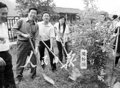 在友誼林的揭牌儀式上,訪問團團長、全日本學友會前會長李光哲博士介紹,2008年當?shù)卣鹚僚八拇ù蟮氐臅r候,身處地震多發(fā)國日本的中國留學生和許多日本友人感同身受,他們走上街頭為災區(qū)募捐、為災區(qū)翻譯、提供救災救援資料、或親身趕往四川擔任志愿者,積極參與災區(qū)的重建。經(jīng)過多方努力,全日本學友會共為四川地震災區(qū)籌集了一億多日元的捐款,從而援建了香泉鄉(xiāng)中心小學等兩所學校。