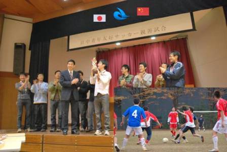 比賽之后與會的中日雙方運(yùn)動員、來賓等還參加了懇親交流會并進(jìn)行了深入和愉快的交流。懇親會上,多數(shù)與會的運(yùn)動員表示,感謝學(xué)友會組織,今后一定要更加積極的參與學(xué)友會活動。同時,多數(shù)學(xué)友表示希望成立聯(lián)賽性質(zhì)的長期的足球交流活動。(張畢)