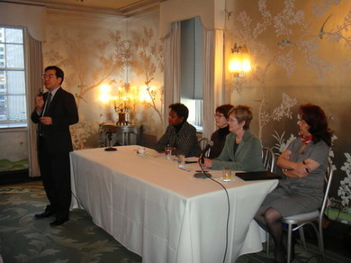 中新網(wǎng)12月11日電 據(jù)外交部網(wǎng)站消息,2009年12月10日,美國伊利諾伊大學(xué)芝加哥分校給來自中國和亞洲的近百名工商管理碩士學(xué)生組織了一場商業(yè)倫理課程研討會,中國駐芝加哥總領(lǐng)事黃屏攜夫人出席,并應(yīng)邀在研討會前致辭。