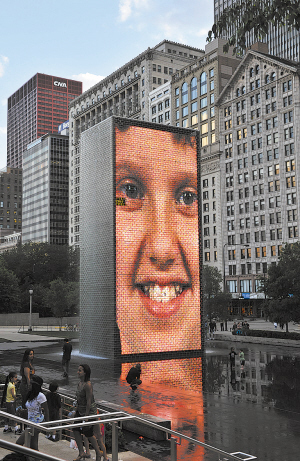 從嚴(yán)肅到微笑,“皇冠噴泉”上映射出的一個(gè)個(gè)臉孔,是最真實(shí)的芝加哥面容。它跨越種族、年齡、身份和性別,是芝加哥多元化最生動(dòng)的體現(xiàn)。