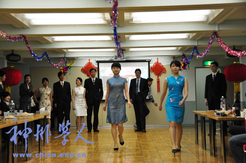 由寮生組成的時(shí)裝表演隊(duì)也閃亮登場。男生身著亮麗的西裝,女生身著富有中華民族特色的旗袍,使大家都眼前一亮。此次時(shí)裝表演是在周曉光老師倡導(dǎo)的對寮生進(jìn)行廣泛禮儀教育的背景下組織起來的,是本次晚會的最大亮點(diǎn)之一。所有人在欣賞時(shí)裝表演的同時(shí),深刻感受到了禮儀的重要性。