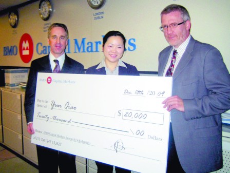 中新網(wǎng)1月15日電 據(jù)加拿大《明報(bào)》報(bào)道,加拿大滿地可銀行(BMO)一年一度的“資本市場高級研究獎(jiǎng)學(xué)金”已于日前公布了評選結(jié)果,約克大學(xué)數(shù)學(xué)和統(tǒng)計(jì)學(xué)博士生,中國留學(xué)生喬云(Yun Qiao)憑借其博士論文贏得此項(xiàng)殊榮,獲得由該銀行頒發(fā)的2萬元獎(jiǎng)學(xué)金。