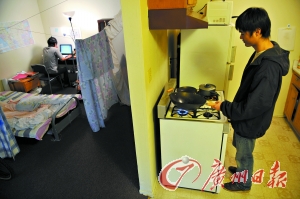 與李俊強同住的小伙子叫郭郭。他家境一般,選了這個套房的客廳作為暫居之地!拔覜]有想過留在這里,也許畢業(yè)了就回國吧,工程藝術(shù)這個專業(yè)在國內(nèi)很容易找到一份好工作的!惫巧綎|人,女朋友還在家鄉(xiāng),每天他都要通過網(wǎng)絡(luò)和女友通話,而剩下的時間基本用在學習上了。