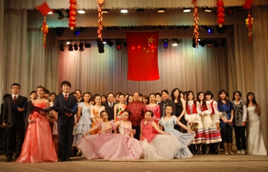 中新網(wǎng)2月1日電 據(jù)外交部網(wǎng)站消息,2010年1月28日,農(nóng)歷臘月十四,溫暖而親切的中國(guó)風(fēng)滿載著濃濃的年味伴隨瑞雪吹進(jìn)白俄羅斯首都明斯克。地處市中心的白俄羅斯國(guó)立大學(xué)附屬高級(jí)中學(xué)大禮堂內(nèi)座無虛席,喜氣洋洋。來自白俄羅斯國(guó)立大學(xué)、國(guó)立音樂學(xué)院、文化藝術(shù)大學(xué)、經(jīng)濟(jì)大學(xué)、工業(yè)大學(xué)、農(nóng)業(yè)技術(shù)大學(xué)、明斯克語言大學(xué)等高校的600多名中國(guó)留學(xué)生在此舉辦“2010年新春聯(lián)歡會(huì)”,駐白俄羅斯大使魯桂成等使館外交官出席,共迎中國(guó)人民的傳統(tǒng)佳節(jié)。