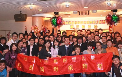 教育室劉占山室長致祝酒詞。西日本地區(qū)學(xué)友會會長張朔源同學(xué)作為留學(xué)生代表在聯(lián)歡會上發(fā)言。2010年度西日本地區(qū)學(xué)友會主要成員也登臺向大家拜年。