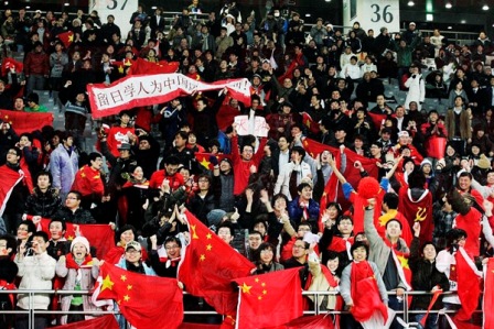 伴隨著中國留學生拉拉隊的吶喊助威聲,中國隊球員于海、郜林和鄧卓翔的各一粒入球3-0完勝衛(wèi)冕冠軍韓國隊,不但終結(jié)長達32年來在國際A級賽事上不勝韓國的“恐韓癥”尷尬記錄,并且創(chuàng)造了戰(zhàn)勝韓國隊的歷史最大比分差紀錄。