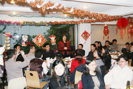 朱小玉公參說,每逢佳節(jié)倍思親,兒行千里母擔(dān)憂,留學(xué)生獨自在外,在春節(jié)時候更容易想家。我們讓大家到教育處來過年,吃年夜飯,看中央電視臺春節(jié)聯(lián)歡晚會,自己組織表演節(jié)目,共同守歲,可讓學(xué)生們感到我們這個大家庭的溫暖,也讓他們感到祖國的關(guān)懷和對他們的重視。朱小玉表示,中國的發(fā)展離不開科技的支撐,科技的創(chuàng)新離不開人才的支撐,留學(xué)生是我們國家明天的希望,因此,大家肩負(fù)重任,要努力學(xué)習(xí),保重自己,早日順利完成學(xué)業(yè),報效祖國,報效父母。