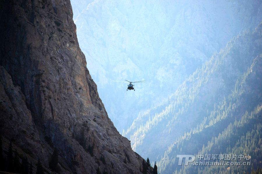 山高溝深,直升飛機(jī)也只飛到半山腰。朱德華 攝