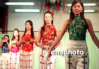 圖:模特在北京春節(jié)廟會(huì)上展示"中國(guó)結(jié)"時(shí)裝