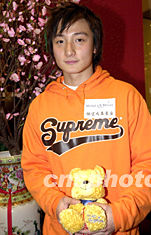 方力申手持愿望成真基金的「小肥」熊公仔宣傳義賣。