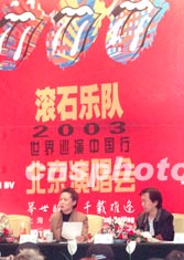 英國世界級搖滾巨星、40年經(jīng)久不衰的“滾石樂隊(duì)”,將于2003年4月1日和4日在上海、北京舉行大型演唱會。中國搖滾音樂歌手崔健(右),六日在北京宣布將協(xié)同演出。作者:鄒憲
