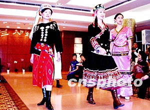 中國駐紐約總領館有一支業(yè)余時裝表演隊。隊員由當?shù)毓ぷ鞯闹袊饨还俸屯饨还俚奶珎兘M成。三月八日國際婦女節(jié)晚上,這支時裝表演隊給大家展示了漂亮的中國民族服飾。作者:龔文謨