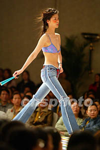 香港mudd jeans 2003年春夏時(shí)裝展二十六日在北京中國(guó)大飯店舉行,模特展示具有青春活力的休閑春夏時(shí)裝。作者:毛建軍