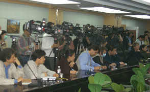 隨后,記者分兩組分別采訪北京市疾病預(yù)防控制中心和收治“非典”患者的地壇醫(yī)院。預(yù)防控制中心負(fù)責(zé)人介紹了該中心的職能及北京市防治“非典”熱線情況。他說,目前開通的中英文“非典”咨詢熱線,每天接收3000人次咨詢。中心有關(guān)人員還就記者提出的“非典”病人數(shù)、分類、“非典”病源研究情況、中心年預(yù)算和“五一”黃金周出游是否安全等問題回答了記者提問。在地壇醫(yī)院,記者走訪了病毒研究中心,還換上特制隔離服進(jìn)入“非典”病房。醫(yī)院副院長兼發(fā)言人項曉培向記者介紹了該院收治的“非典”病人數(shù)及醫(yī)護(hù)情況。