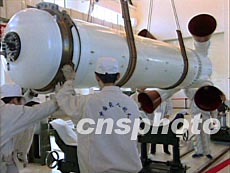 中國(guó)航天科技集團(tuán)公司五月初透露,神舟五號(hào)載人飛船和發(fā)射飛船的長(zhǎng)征二號(hào)F火箭的研制工作進(jìn)展順利,將于年內(nèi)如期升空。中新社圖