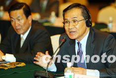 博鰲亞洲論壇SARS與亞洲經(jīng)濟--影響評估與政策建議研討會十四日在北京結(jié)束,泰國駐華大使敦.帕瑪威奈在會上演講。中新社記者:毛建軍