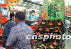 臨近端午節(jié),香港店鋪擺滿了各式各樣的粽子,供顧客挑選。中新社傳真 譚達(dá)明 攝