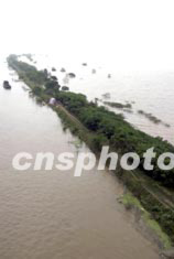 七月十四日,由于晴天及第二次洪峰的順利通過(guò),淮河安徽淮南段水位下降,曾幾乎被淹沒(méi)的堤壩在洪水下降時(shí)逐漸露出真面目。中新社記者:盛佳鵬