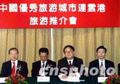 江蘇省連云港市十七日在香港舉行旅游推介會,尋求與香港及海外旅游界的合作。圖為連云港市旅游局局長李道瑩(右二)在推介會上。作者:謝育元