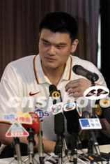 小巨人"姚明聯同中國籃球隊抵達香港,掀起一股"姚明熱"。四日姚明等出席記者會,中國籃球隊將在六日與墨爾本老虎隊對壘。作者:蕭紓昊