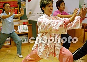 香港太極名家李暉,八月十一日在香港舉行的首本著作《簡(jiǎn)易太極圖書(shū)》發(fā)布會(huì)上,示范二十四式簡(jiǎn)易太極拳。中新社記者:錢(qián)興強(qiáng)