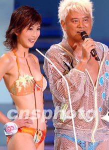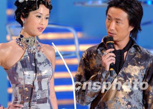 香港明星曾志偉 ,在二十三日晚紅(石+勘)香港體育館舉行的2003年度香港小姐競(jìng)選決賽上擔(dān)任司儀 。 中新社傳真 錢興強(qiáng) 攝