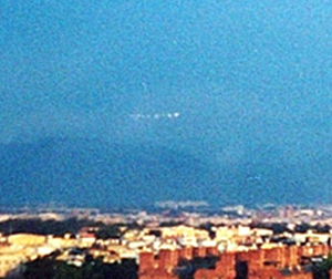 他們上樓后,在火星方位的東南方上下尋找火星蹤跡,由于天色仍亮,找不到火星,但突然在同方位的下方遠(yuǎn)處;大溪鎮(zhèn)后方山區(qū)上空,發(fā)現(xiàn)一排發(fā)著金黃色光彩的橢圓形飛行物緩緩移動,方向由東南方往西前進(jìn),數(shù)量大約是10余架,有3架好象是帶頭的,一架在最前,后面兩只是上下排列,狀似三角形。帶頭的三架并一度90度轉(zhuǎn)彎消失,約三秒后又突然出現(xiàn)與機(jī)隊(duì)會合,隨后再整隊(duì)緩緩前進(jìn),消失在云霧中。