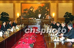 胡錦濤首先對上海合作組織總理會晤的成功舉行并取得重要成果表示祝賀。他說,這次會晤簽署及批準(zhǔn)的《上海合作組織成員國多邊經(jīng)貿(mào)合作綱要》等文件,為六國經(jīng)濟(jì)合作奠定了重要法律基礎(chǔ),必將進(jìn)一步推動區(qū)域經(jīng)濟(jì)合作,并為組織的兩個常設(shè)機(jī)構(gòu)如期啟動創(chuàng)造有利條件。