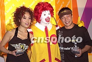 歌星陳奕迅、容祖兒9月23日在香港出席麥當(dāng)勞全球性的“i’m Iovin’ it”品牌推廣活動記者會,陳奕迅、容祖兒將為香港區(qū)麥當(dāng)勞為配合全球性電視廣告推出的“i’m Iovin’ it”廣告片主唱粵語版主題歌。作者:鄧慶樂