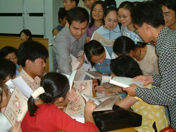 演講贏得了合工大的學(xué)生們的共鳴,據(jù)了解,參加演講的學(xué)生中有大部分是學(xué)校愛心活動的志愿者。來自該校材料系3年級的徐同學(xué)告訴記者,他的四位舍友都是扶殘助殘的志愿者:“我們開始見到殘疾人時不會回避,但心底里還是覺得他們與我們不同,有些距離,但是做了志愿者的工作后,我開始了解了他們真正的生活”。一旁來自計算機系的新生說:“雖然我還沒來得及參加助殘活動,但我知道,要讓殘疾人過的好些,我們應(yīng)該更努力些”。