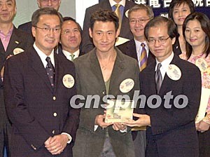 10月16日,香港電臺(tái)與警務(wù)處聯(lián)合制作的電視節(jié)目《警訊》舉行三十周年紀(jì)念典禮,警務(wù)處處長曾蔭培及廣播處長朱培慶與歌星張學(xué)友于活動(dòng)上言談甚歡。作者:鄧慶樂