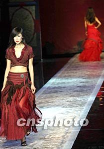 十一月二十五日晚,紫禁城的四季·馬克張春夏高級(jí)時(shí)裝發(fā)布會(huì)在北京中國大飯店舉行,模特為觀眾演繹了一場(chǎng)雍容華貴、充滿皇家氣勢(shì)的視覺盛宴。中新社記者:盛佳鵬