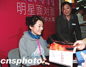 十二月六日下午三時,基本淡出娛樂圈的“美女明星”許晴在北京圖書大廈參加《E·T衛(wèi)視周刊》雜志社舉辦的明星面對面現場簽名活動。作者:徐曦弋