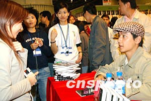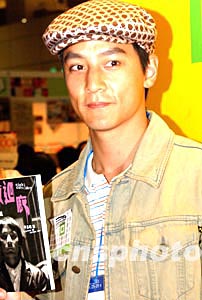 香港藝員吳彥祖十二月二十六日在香港會展中心舉行的“書節(jié)2003”上,為電影原著小說《妖夜回廊》簽名。中新社記者:錢興強