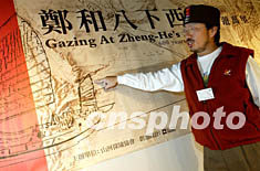 “臺灣山河探險協(xié)會”理事長徐海鵬一月八日在北京舉行的新聞發(fā)布會上介紹鄭和下西洋航海路線圖,并號召海峽兩岸共同參與“鄭和八下西洋”探險活動,以紀(jì)念明朝偉大航海家鄭和六百年前下西洋的壯舉。探險隊(duì)在精心挑選隊(duì)員后,將于2005年啟航,歷時三年走訪二十余個國家、數(shù)十個港口,2008年返航。中新社記者:毛建軍