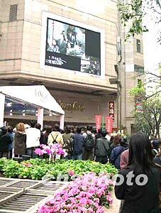 香港一代歌后梅艷芳1月12日舉行出殯,午間位于銅鑼灣時代廣場電視大屏幕下聚集大批市民駐足觀看電視直播。中新社記者:鄧慶樂