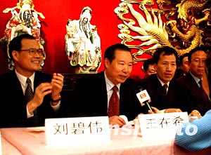中國(guó)國(guó)臺(tái)辦副主任王在希(左二)十三日抵達(dá)紐約與四百多名僑胞見(jiàn)面,非常坦率地闡述了中國(guó)政府對(duì)臺(tái)灣問(wèn)題的立場(chǎng)和近期的政策,表示中國(guó)政府對(duì)任何“臺(tái)獨(dú)”分裂活動(dòng)都有充分準(zhǔn)備,有決心、有能力、有辦法確保國(guó)家主權(quán)和領(lǐng)土的完整,中國(guó)駐紐約總領(lǐng)事劉碧偉(左一)、美東華人社團(tuán)聯(lián)合總會(huì)共同主席梁冠軍(左三)等出席了見(jiàn)面會(huì)。中新社記者:趙海燕