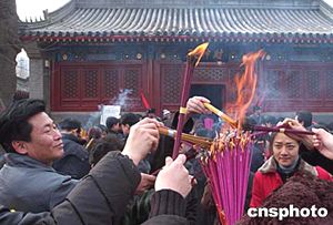 北京最具地方特色的第十八屆白云觀廟會(huì)正式開(kāi)幕,許多工商界人士和市民在財(cái)神殿前祈求財(cái)運(yùn)。中新社記者:張煒