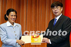 中國人民對外友好協(xié)會會長陳昊蘇,二月二十六日在北京向泰國詩琳通公主授予“人民友好使者”稱號,以褒獎她多年來為發(fā)展泰中友好關(guān)系作出的突出貢獻(xiàn)。中新社記者:毛建軍