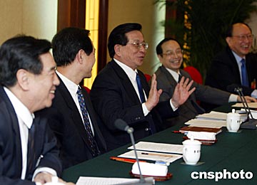 溫家寶今天來到出席全國政協(xié)十屆二次會議經(jīng)濟界和農(nóng)業(yè)界委員下榻的鐵道大廈。在經(jīng)濟界和農(nóng)業(yè)界聯(lián)組會上,溫家寶認(rèn)真聽取委員們的發(fā)言,他感謝委員們對政府工作的關(guān)心和支持,表示要認(rèn)真研究大家的意見和建議,努力改進政府工作。