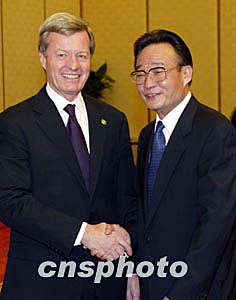 在會見美國參議員鮑克斯時,吳邦國說,中美關(guān)系總體發(fā)展良好,兩國領(lǐng)導(dǎo)人保持著密切對話與交往。雙方在經(jīng)貿(mào)、反恐、朝核等重要領(lǐng)域進行了有效的磋商、協(xié)調(diào)與合作。這符合中美兩國和兩國人民的根本利益,也有利于世界的和平、穩(wěn)定與發(fā)展。