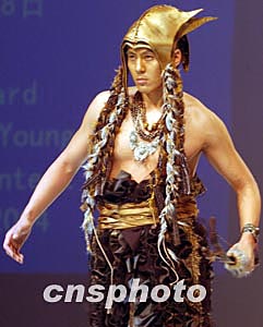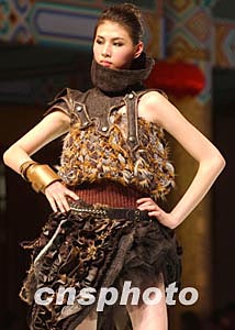 臺灣青年設(shè)計師陳琦珍在三月底北京“漢帛獎”第十二屆國際青年設(shè)計師時裝作品大賽中,以《武魂》主題將T型臺演繹為深淵中男武士的飄蕩之靈。中新社記者:賈國榮