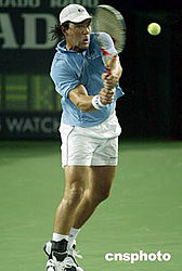 九月十三日,在北京網(wǎng)球中心中央球場(chǎng)舉行的中國(guó)網(wǎng)球公開(kāi)賽男子單打比賽中,ATP巡回賽排名第二十五位的德國(guó)網(wǎng)球名將舒特勒,以二比零戰(zhàn)勝澳大利亞選手巴卡尼羅,順利晉級(jí)下一輪比賽。圖為巴卡尼羅在比賽中。中新社記者:盛佳鵬