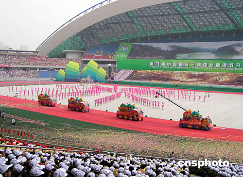 圖為著名龍鄉(xiāng)重慶銅梁縣舞龍隊(duì)在開(kāi)幕式上表演的龍舞