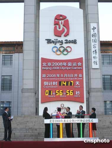 中新社北京九月二十一日電 (記者 王歡)距離二00八年北京奧運會開幕還有一千四百一十七天,今晚六時,位于天安門廣場東側(cè)國家博物館門前的北京奧運會“倒計時鐘”正式啟動,標志著北京奧運會又一個階段性的時刻開始。