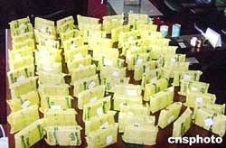 圖為用黃色塑料紙包裹的毒品。作者:韓登學