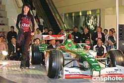 九月二十四日晚,作為捷豹車隊(duì)唯一服裝贊助商的德國(guó)著名休閑服裝品牌Tom Tailor 04秋冬時(shí)裝發(fā)布會(huì)在上海舉行。發(fā)布會(huì)現(xiàn)場(chǎng)商家別出心裁的“請(qǐng)”來(lái)了F1賽車為本場(chǎng)時(shí)裝秀助陣,美女加賽車吸引了不少觀眾的眼球。作者:湯彥俊