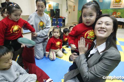 十一月十六日,北京京城特衛(wèi)安全顧問有限公司的職員朱麗萍在北京的一家幼兒園與小朋友歡娛。從本月三十日起,她將成為該幼兒園的“女保鏢”并成為京城幼兒園的首位“女保鏢”。現(xiàn)年二十六歲的朱麗萍曾是特警,復員轉業(yè)后在北京京城特衛(wèi)安全顧問有限公司供職。作者:任海霞